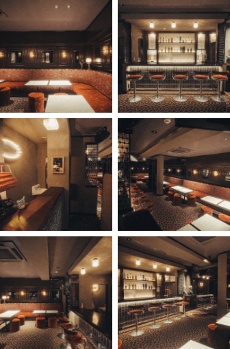 コストを惜しまず施されたステンドグラスや大理石の内装、異空間を醸し出す西洋の柄や照明。日本の わびさび文化とは逆行した、華美で異端なこれぞ昭和バブル期という装飾を可能な限り再現していま す。什器やスツールなども1から設計し、全体を通して昭和感じる空間へ。営業形態はカラオケバーですが、当時のキャバレーやスナック、純喫茶のムードを感じてもらいつつ、 空間にも酔いしれてもらえたら本望です。