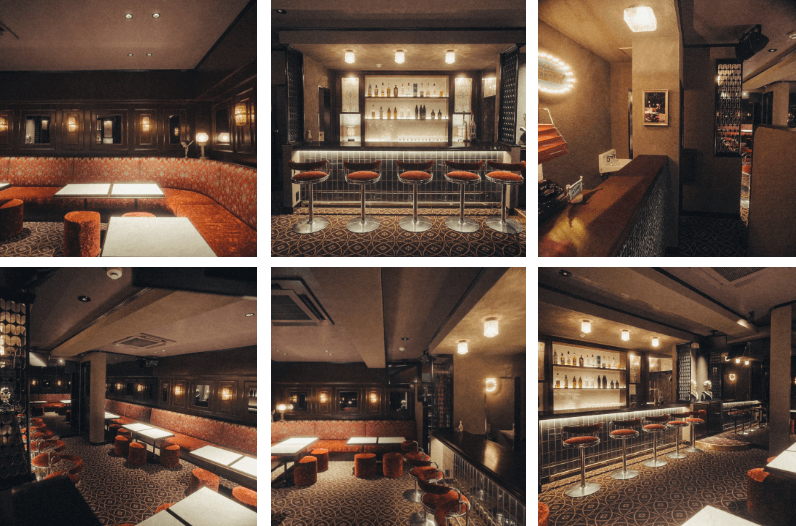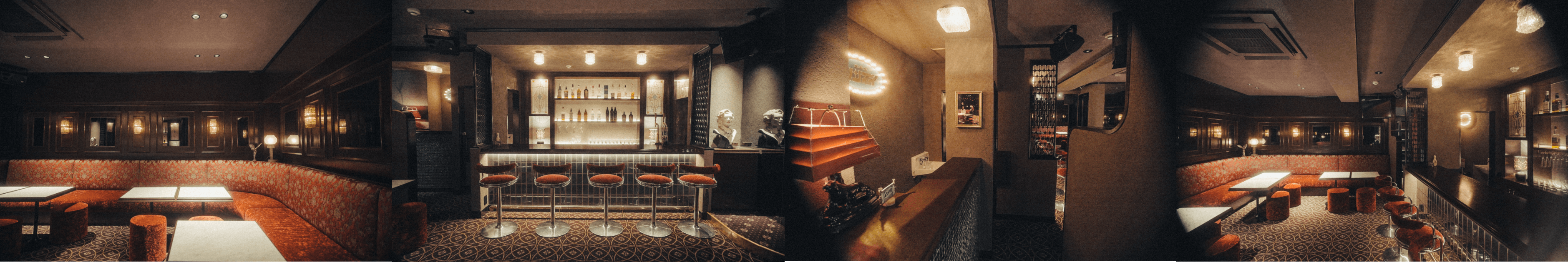 コストを惜しまず施されたステンドグラスや大理石の内装、異空間を醸し出す西洋の柄や照明。日本の わびさび文化とは逆行した、華美で異端なこれぞ昭和バブル期という装飾を可能な限り再現していま す。什器やスツールなども1から設計し、全体を通して昭和感じる空間へ。営業形態はカラオケバーですが、当時のキャバレーやスナック、純喫茶のムードを感じてもらいつつ、 空間にも酔いしれてもらえたら本望です。